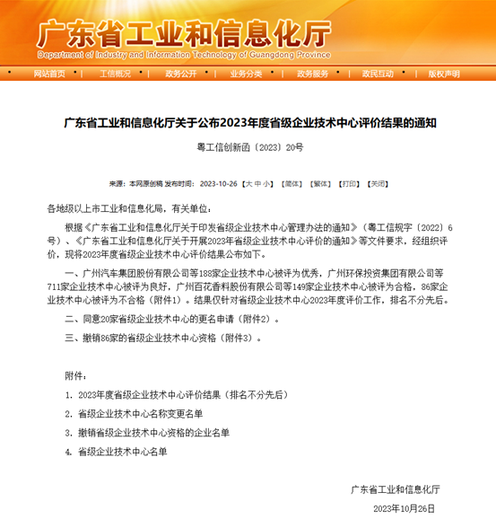 近日,广东省工业和信息化厅公布2023年度省级企业技术中心评价结果,环球手机官方网站_环球(中国)有限公司顺利通过本次评价,连续多年获评省级企业技术中心称号。