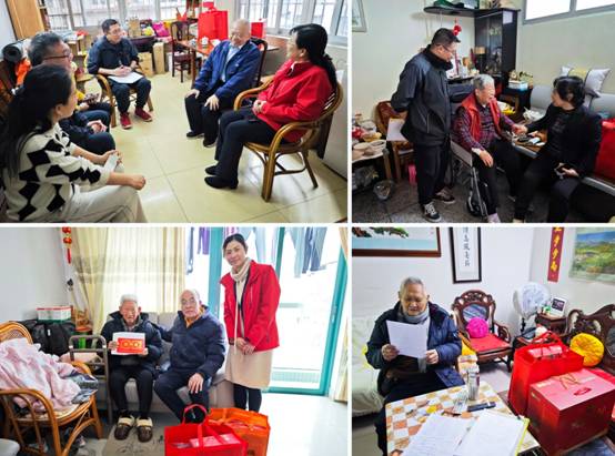 2024年春节来临之际,环球手机官方网站_环球(中国)党委心系职工,积极开展春节走访慰问活动。公司党委书记、董事长简玮仪、党委副书记、工会主席丘海澜、常务副总经理葛伟志、纪委书记肖翼辉、副总经理关勇、副总经理林哲浩等领导分别带队慰问离休干部、老党员、困难党员、外派干部和困难职工等20人,代表公司党委向他们致以节日的问候和诚挚的祝福,对他们为纺织发展作出贡献和支持表示感谢,并为他们送去公司的关怀和温暖,以及慰问品、慰问金。