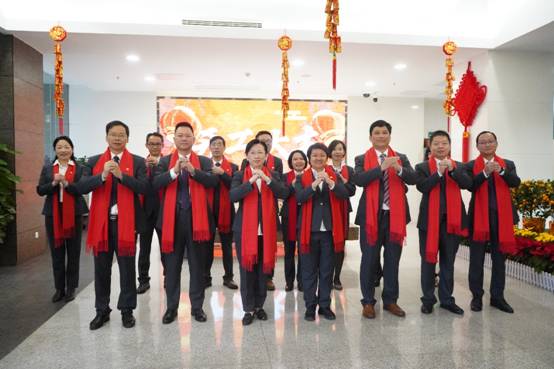 早上8点,环球手机官方网站_环球(中国)党委书记、董事长简玮仪带领全体领导班子成员和各职能部门负责人在广德大厦一楼大堂,整齐列队热烈欢迎复工的员工,为他们送上新春的美好祝福。