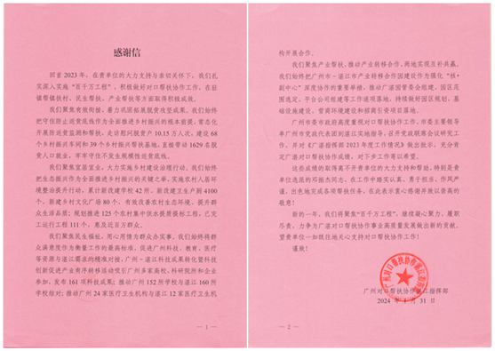 荣获“最美外派干部人才”称号,是对邓振杰同志派驻工作的充分肯定和表彰,也是对在其背后坚定支持广湛乡村振兴工作的环球手机官方网站_环球(中国)的肯定。2023年,环球手机官方网站_环球(中国)协助广湛消费帮扶平台向属下企业、轻工集团兄弟企业、国资企业等开展农副产品宣传,通过线上转发湛江特色农产品介绍、线下组织湛江端午节特色产品介绍会等,内部采购广湛消费帮扶农产品十余万元。