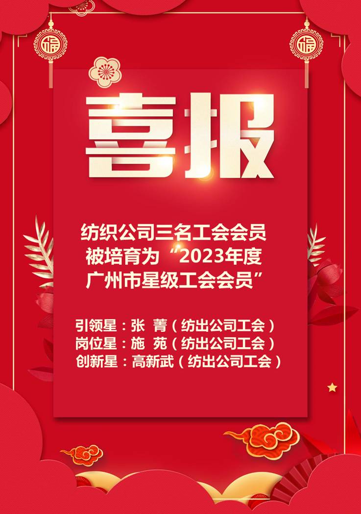 喜报:环球手机官方网站_环球(中国)三名工会会员被培育为“2023年度星级工会会员”