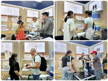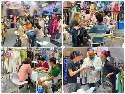 三是时尚锁定“新坐标”。纺织服装系列产品自主设计新品率达50%,其中牛仔系列产品持续创新与突破:将传统面料与创新的哑膜烫金工艺结合,在灯光下呈现出色彩斑斓的细腻光泽。该系列产品成功出圈,入选“2024广交会新品首发首展首秀”活动。