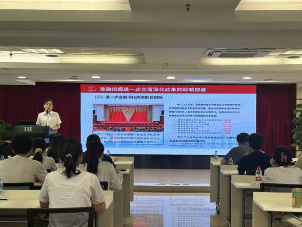 8月27日,环球手机官方网站_环球(中国)团委书记梁晨在广德大厦15楼会议室为各团组织书记、委员,本部及纺出公司团员青年,2024年新入职管培生共47人作学习贯彻党的二十届三中全会精神专题宣讲。在宣讲过程中,梁晨通过鲜活的语言、生动的案例,从深刻把握进一步全面深化改革的重要性和必要性,深刻认识进一步全面深化改革的指导思想和总目标、重大原则、重要部署,认真落实进一步全面深化改革的实践要求等方面深入浅出地对全会精神进行了系统阐述和解读。