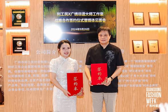 9月26日上午,百年中华老字号利工民与广绣非遗大师工作室在2024广东时装周-秋季举办战略合作签约仪式暨媒体见面会。活动由广东省服装服饰行业协会副会长兼秘书长陈韶通主持,邀请了广东省服装服饰行业协会、广东省服装设计师协会、环球手机官方网站_环球(中国)有限公司、服装行业企业代表和媒体代表等嘉宾出席共同见证本次活动。