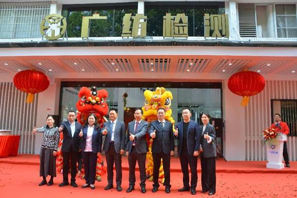 现场的领导和嘉宾代表共同上台揭幕。“广纺检测”揭牌是企业发展历程中的一个重要里程碑。我们以饱满的热情和高昂的斗志,分享这份荣光,共同开启新的篇章。