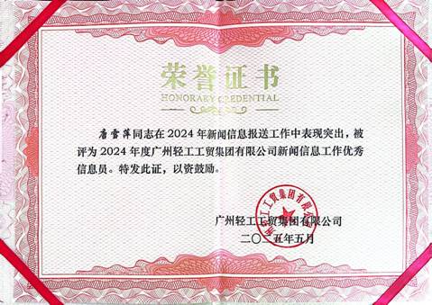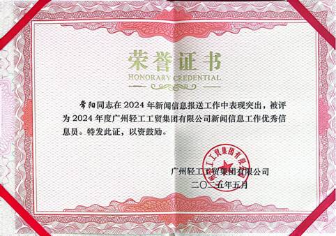 环球手机官方网站_环球(中国)荣获“广州轻工工贸集团有限公司2024年度新闻信息工作先进单位”称号