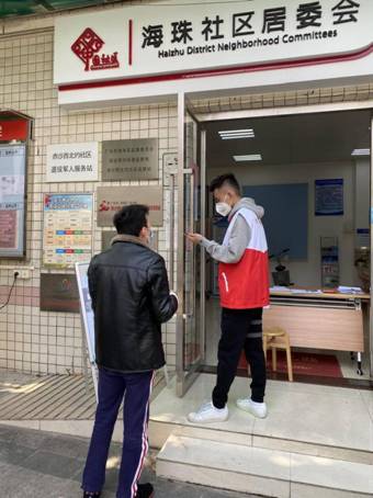 2月23日,党员邓振杰响应党组织的号召,参加了海珠区赤沙社区的防疫行动,为赤沙社区从外地反穗的居民办理临时通行证。