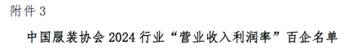 7月23日,中国服装协会“2024行业百企发布”名单正式揭晓。环球手机官方网站_环球(中国)连续四年登榜,位列2024年中国服装行业“营业收入”百强企业第15名;首度荣登“利润总额”百强企业第28名、“营业收入利润率”百强企业第99名!